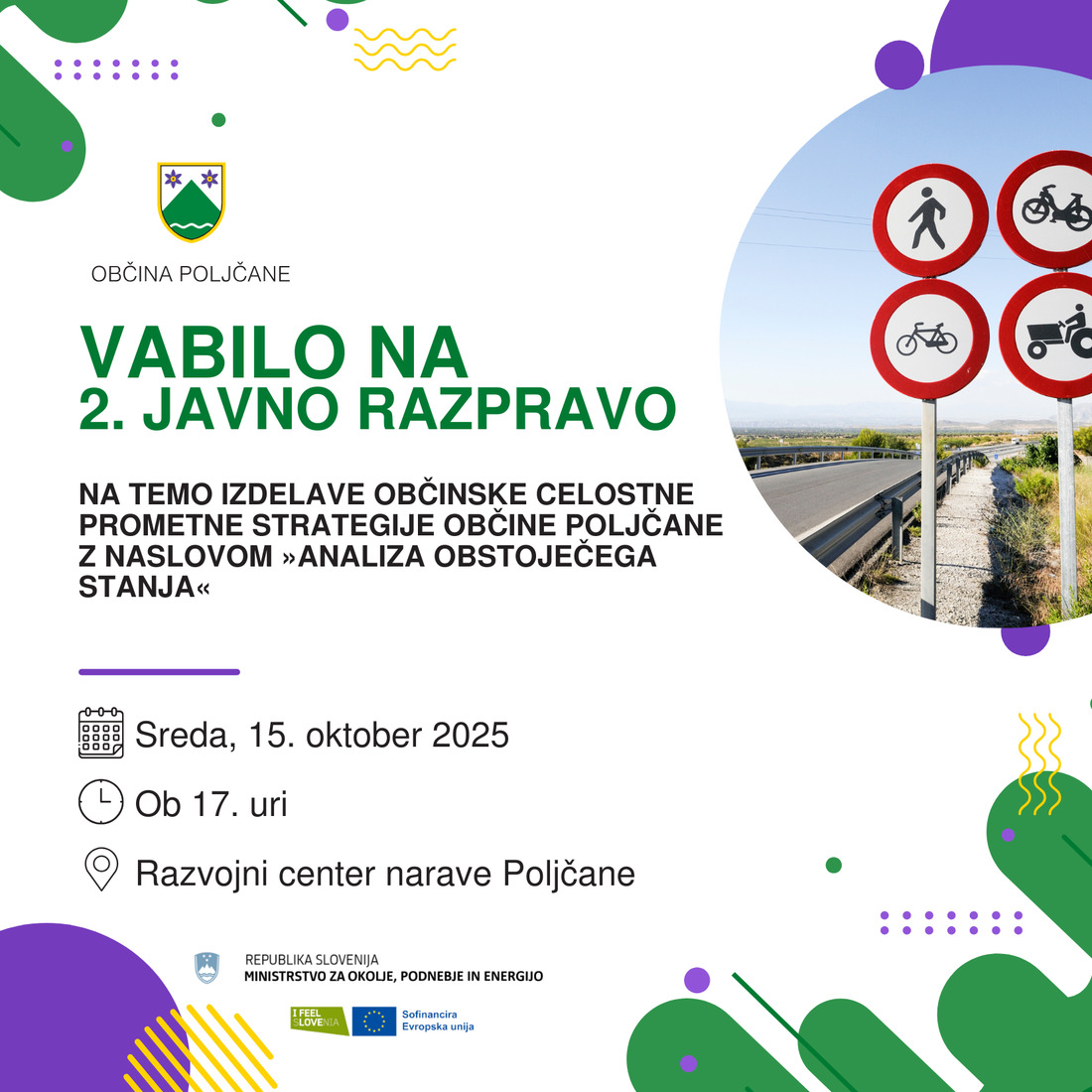 2. javno razprava na temo izdelave Občinske celostne prometne strategije Občine Poljčane z naslovom »ANALIZA OBSTOJEČEGA STANJA«
